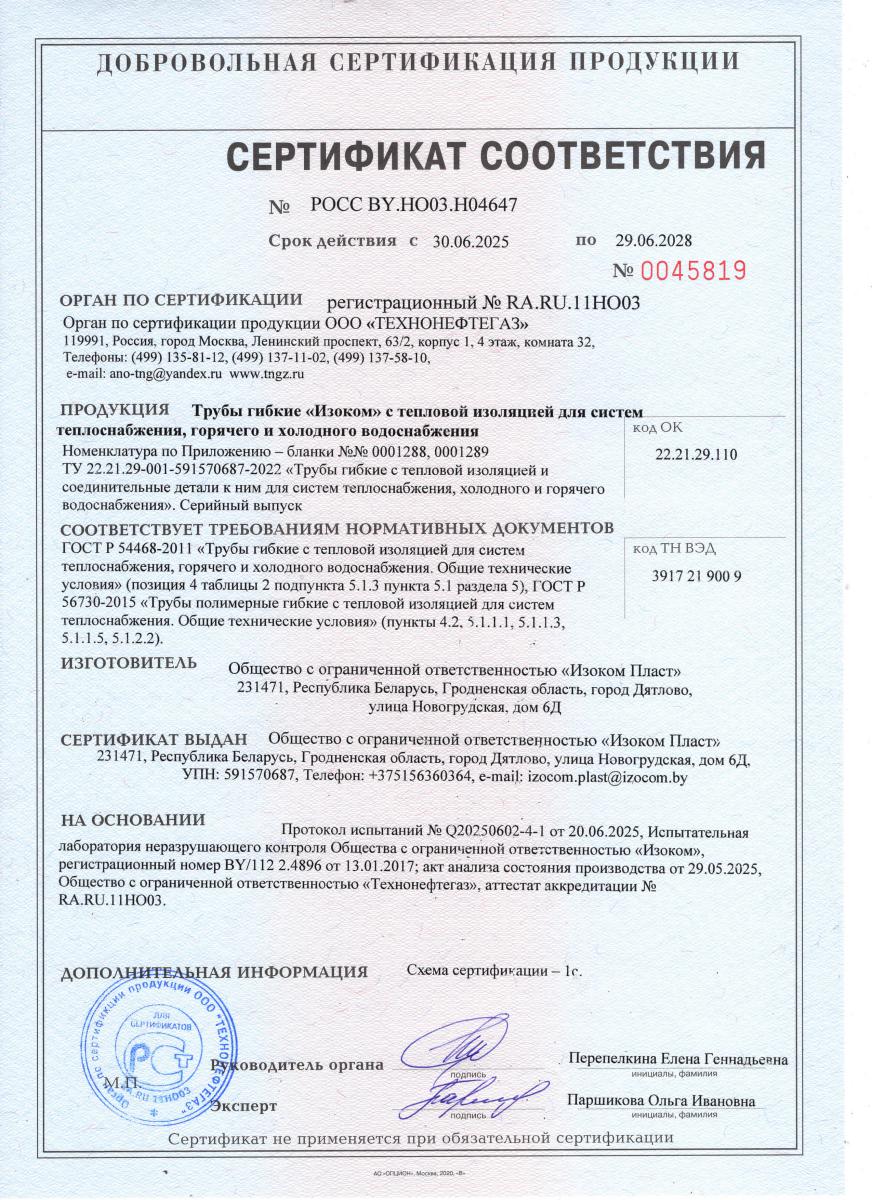 БИБЛИОТЕКА ДОКУМЕНТОВ НОРМАТИВНЫЕ ДОКУМЕНТЫ Написать в WhatsApp Написать в Telegram СВЯЗАТЬСЯ С НАМИ! отправить заявку Нажимая на кнопку «Отправить заявку», вы даёте согласие на обработку ваших персональных данных и соглашаетесь с условиями политики конфиденциальности АЛЬБОМЫ ПРОЕКТНЫХ РЕШЕНИЙ ПРЕЗЕНТАЦИЯ ГПИ ИЗОКОМ 2023Г. Каталог продукции ИЗОКОМ ПЛАСТ 2025 Альбом с рекомендациями по проектированию тепловых сетей ГПИ ИЗОКОМ 2022 Инструкция по монтажу пресс фасонных изделий трубопроводной системы ИЗОКОМ А РЕХ-А 95 Инструкция по монтажу обжимных фасонных изделий трубопроводной системы ИЗОКОМ А РЕХ-А 115 Инструкция по изоляции стыка ГПИ труб ИЗОКОМ сертификаты «Изоком Пласт» СЕРТИФИЦИРУЕТ СВОЮ ПРОДУКЦИЮ И ПОДТВЕРЖДАЕТ ЕЕ ВЫСОКОЕ КАЧЕСТВО В НАЦИОНАЛЬНЫХ И МЕЖДУНАРОДНЫХ УПОЛНОМОЧЕННЫХ ОРГАНИЗАЦИЯХ. СЕРТИФИКАТЫ. Технические свидетельства ТС 06.1594.21 Техническое Свидетельство Министерство Архитектуры и Строительства республики Беларусь ТС 06.1594.21 Протоколы и аттестаты испытаний Протоколы испытаний АЛ0117ПИ-02-ВП 2020 АЛ0118ПИ-02-ВП и АЛ0117ПИ-02-ВП 2020 Сертификат Энергоэффективности Аттестат испытательной лаборотории АЛЬФА Протокол испытаний Белорусский национальный технический университет рег №1115 от 05 мая 2018г Протокол испытаний теплопроводности на основе Циклопентана Белорусский национальный технический университет рег №662 от 31.03.2023 Протокол испытаний ООО ЮЛТА КОМПЛЕКС рег №15520 от 16 апреля 2020г. паспорта качества Паспорт качества ГПИ ИЗОКОМ A PE-Ха 115 ˚С 1,0 МПа Паспорт качества ГПИ ИЗОКОМ A PE-Ха 95 ˚С 1,0 МПа декларация соответствия Деклар. соответ ГПИ-труба Деклар соответствия армир 120 СВЯЗАТЬСЯ С НАМИ! отправить заявку Нажимая на кнопку «Отправить заявку», вы даёте согласие на обработку ваших персональных данных и соглашаетесь с условиями политики конфиденциальности