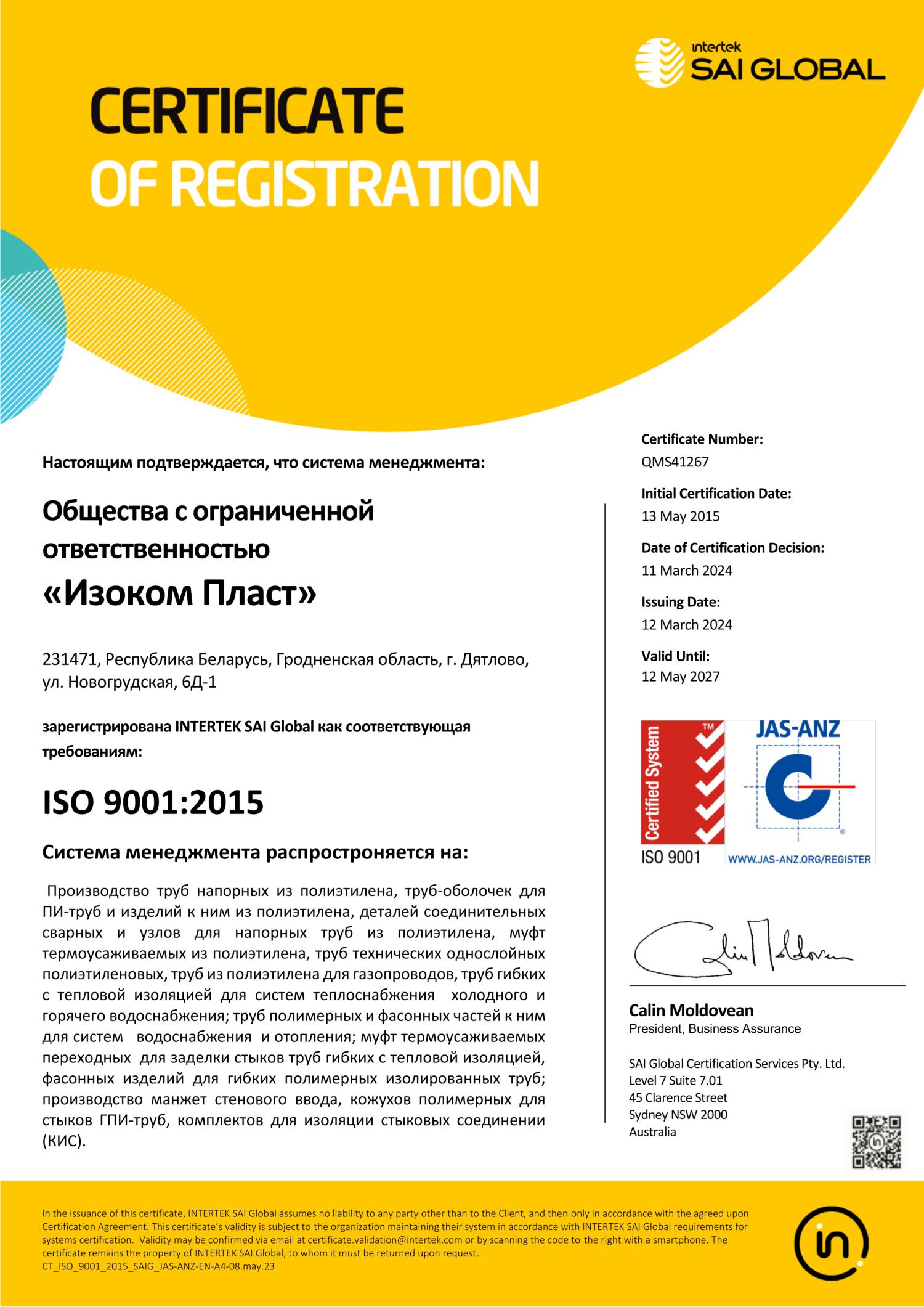 БИБЛИОТЕКА ДОКУМЕНТОВ НОРМАТИВНЫЕ ДОКУМЕНТЫ Написать в WhatsApp Написать в Telegram СВЯЗАТЬСЯ С НАМИ! отправить заявку Нажимая на кнопку «Отправить заявку», вы даёте согласие на обработку ваших персональных данных и соглашаетесь с условиями политики конфиденциальности АЛЬБОМЫ ПРОЕКТНЫХ РЕШЕНИЙ ПРЕЗЕНТАЦИЯ ГПИ ИЗОКОМ 2023Г. Каталог продукции ИЗОКОМ ПЛАСТ 2025 Альбом с рекомендациями по проектированию тепловых сетей ГПИ ИЗОКОМ 2022 Инструкция по монтажу пресс фасонных изделий трубопроводной системы ИЗОКОМ А РЕХ-А 95 Инструкция по монтажу обжимных фасонных изделий трубопроводной системы ИЗОКОМ А РЕХ-А 115 Инструкция по изоляции стыка ГПИ труб ИЗОКОМ сертификаты «Изоком Пласт» СЕРТИФИЦИРУЕТ СВОЮ ПРОДУКЦИЮ И ПОДТВЕРЖДАЕТ ЕЕ ВЫСОКОЕ КАЧЕСТВО В НАЦИОНАЛЬНЫХ И МЕЖДУНАРОДНЫХ УПОЛНОМОЧЕННЫХ ОРГАНИЗАЦИЯХ. СЕРТИФИКАТЫ. Технические свидетельства ТС 06.1594.21 Техническое Свидетельство Министерство Архитектуры и Строительства республики Беларусь ТС 06.1594.21 Протоколы и аттестаты испытаний Протоколы испытаний АЛ0117ПИ-02-ВП 2020 АЛ0118ПИ-02-ВП и АЛ0117ПИ-02-ВП 2020 Сертификат Энергоэффективности Аттестат испытательной лаборотории АЛЬФА Протокол испытаний Белорусский национальный технический университет рег №1115 от 05 мая 2018г Протокол испытаний теплопроводности на основе Циклопентана Белорусский национальный технический университет рег №662 от 31.03.2023 Протокол испытаний ООО ЮЛТА КОМПЛЕКС рег №15520 от 16 апреля 2020г. паспорта качества Паспорт качества ГПИ ИЗОКОМ A PE-Ха 115 ˚С 1,0 МПа Паспорт качества ГПИ ИЗОКОМ A PE-Ха 95 ˚С 1,0 МПа Декларация соответствия Деклар. соответ ГПИ-труба Деклар соответствия армир 120 Политика компании Антикоррупционная политика Полититика охраны труда СВЯЗАТЬСЯ С НАМИ! отправить заявку Нажимая на кнопку «Отправить заявку», вы даёте согласие на обработку ваших персональных данных и соглашаетесь с условиями политики конфиденциальности